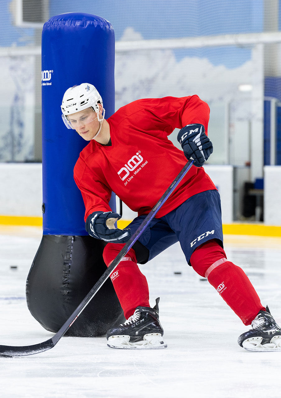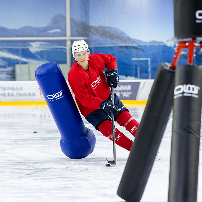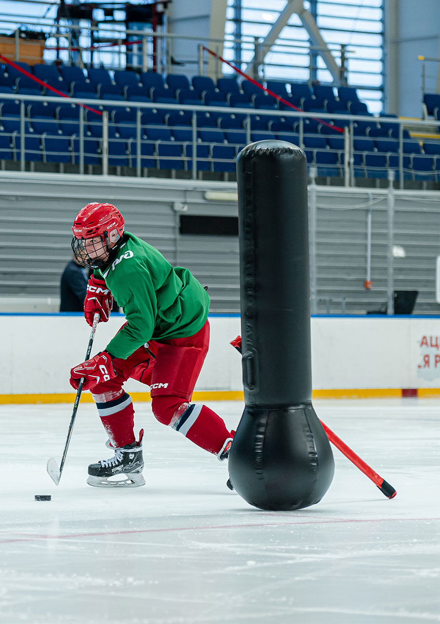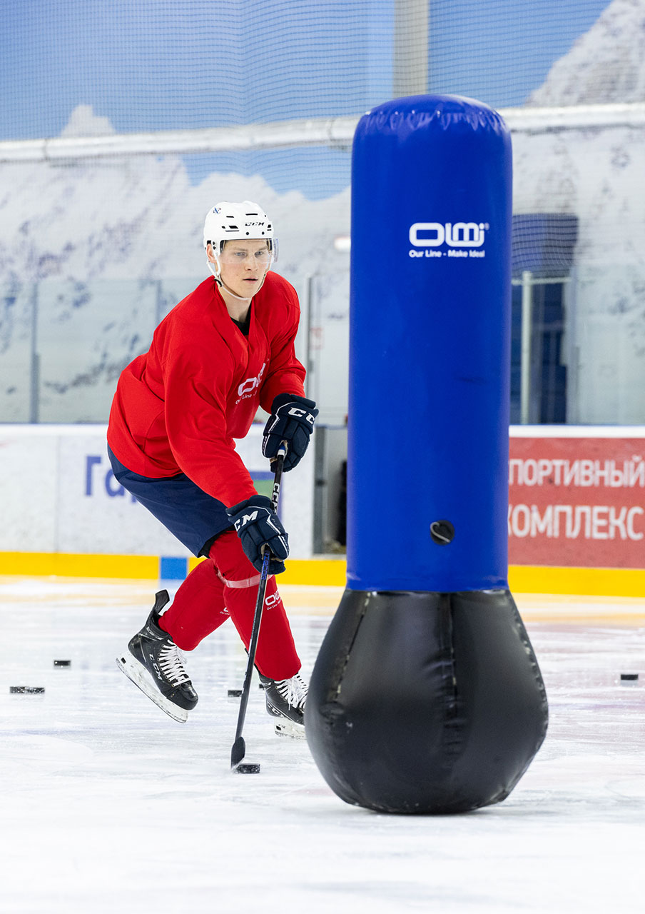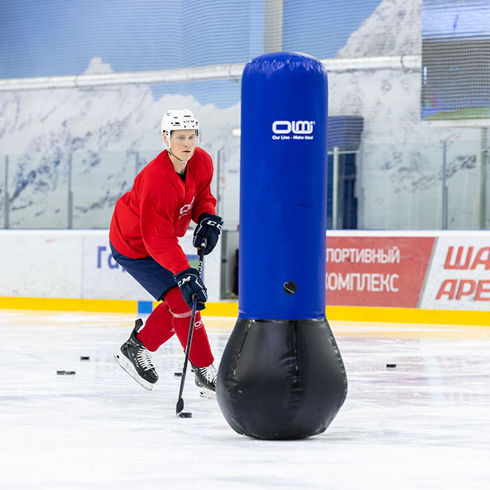 Стойка имитатор хоккеист может быть разных размеров по высоте и диаметру, что позволяет применять в различных упражнениях на тренировках хоккеистов разных возрастов. Хоккейный тренажер развивает и тренирует навыки катания, паса, дриблинга, открывания, а также обучает хоккеистов правильным позициям на площадке и тактическим моментам.
