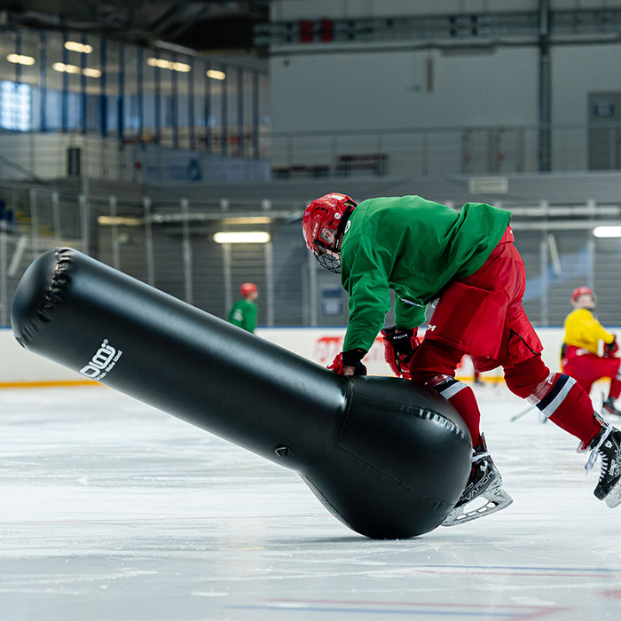 Стойка хоккеист имеет безопасную конструкцию, которая позволяет допускать даже контакт с ней без ущерба здоровью для игроков. Тренажер легко и быстро перемещается по льду на другое место для вариативности упражнений. Это делает ее идеальным инструментом у тренеров в хоккее для использования в тренировках команд и индивидуальных тренировок хоккеистов.